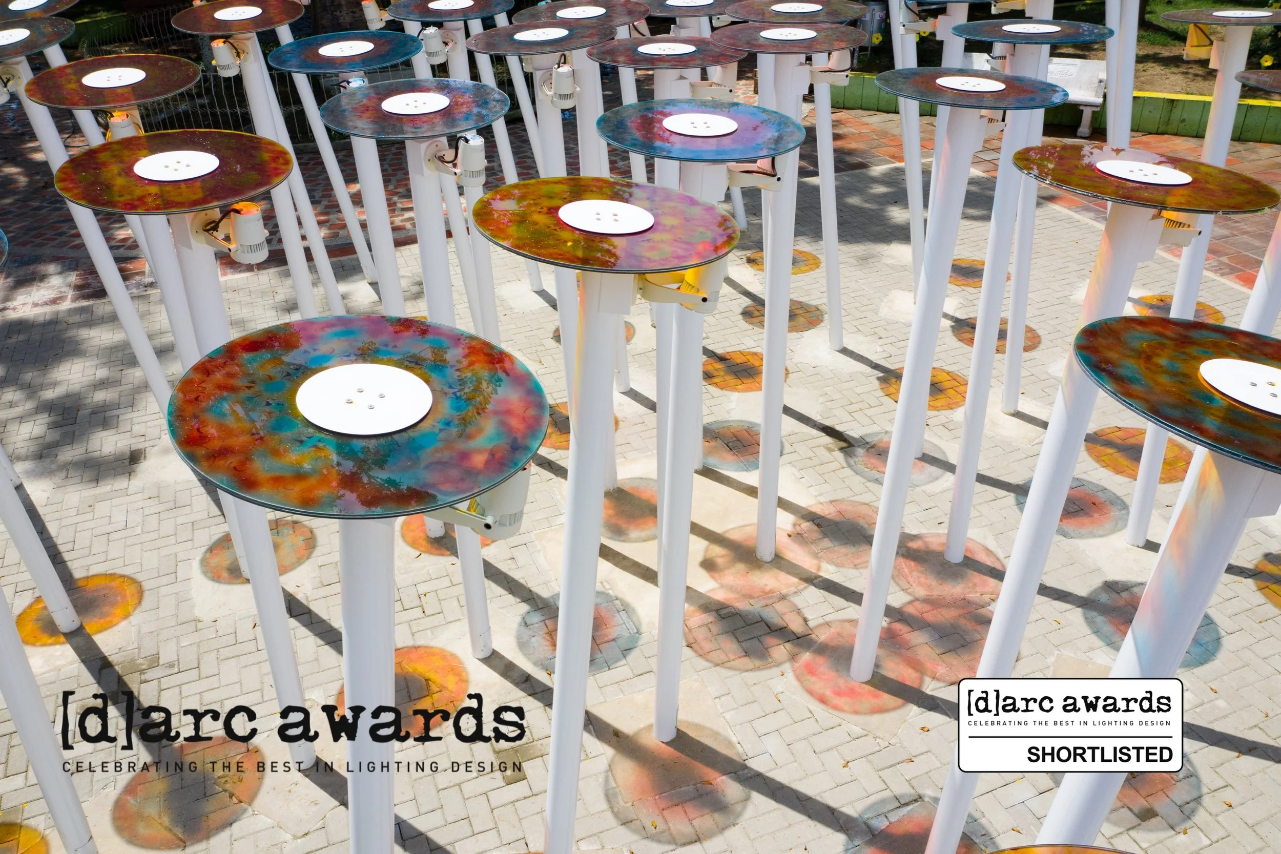 Flor de Luz. Escultura de art light interactiva. Para el programa Pueblos Mágicos. por la Gobernación y la Secretaria de Turismo del Valle de Cauca, Colombia